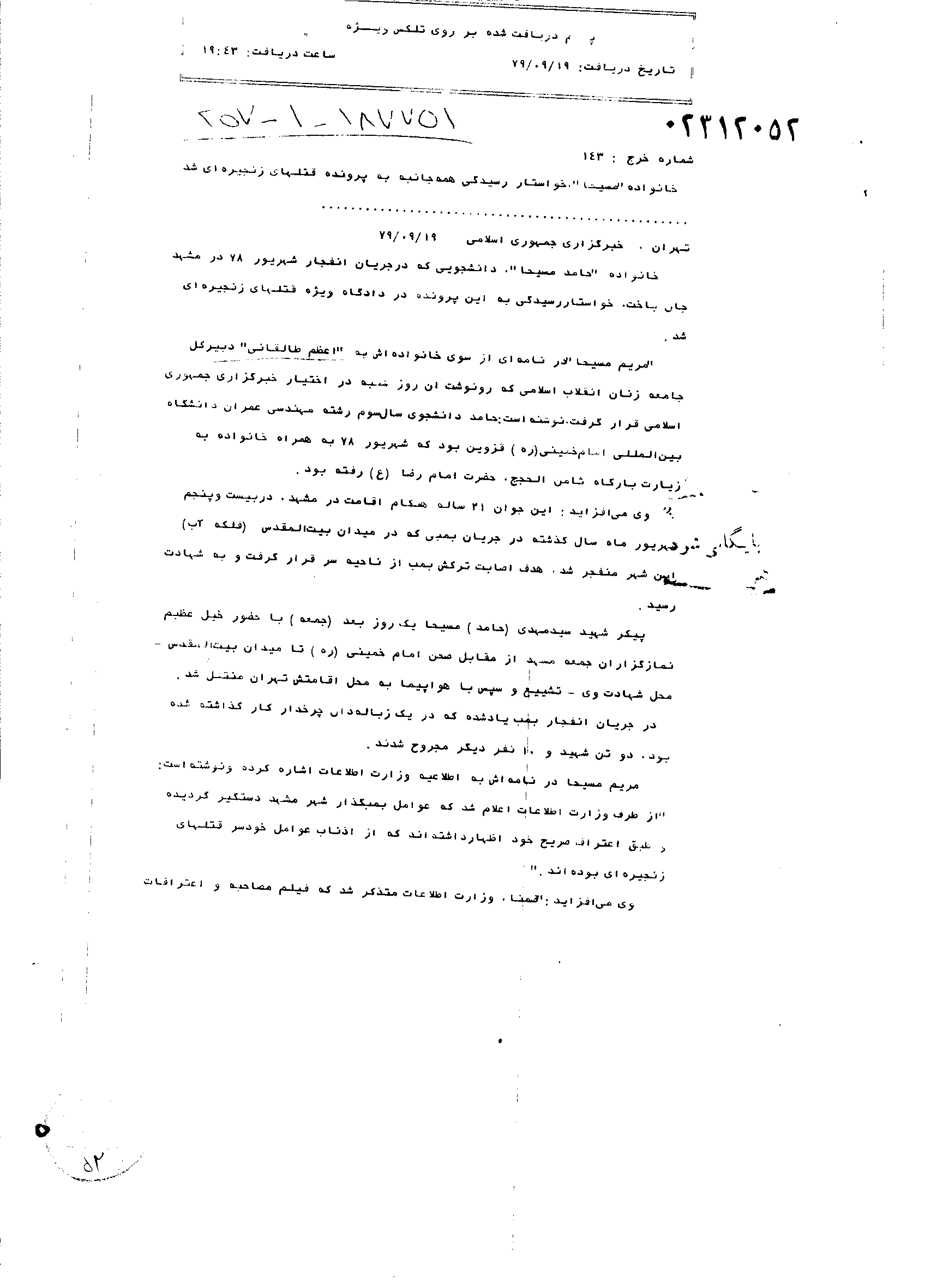 نامه خانواده مسیحا