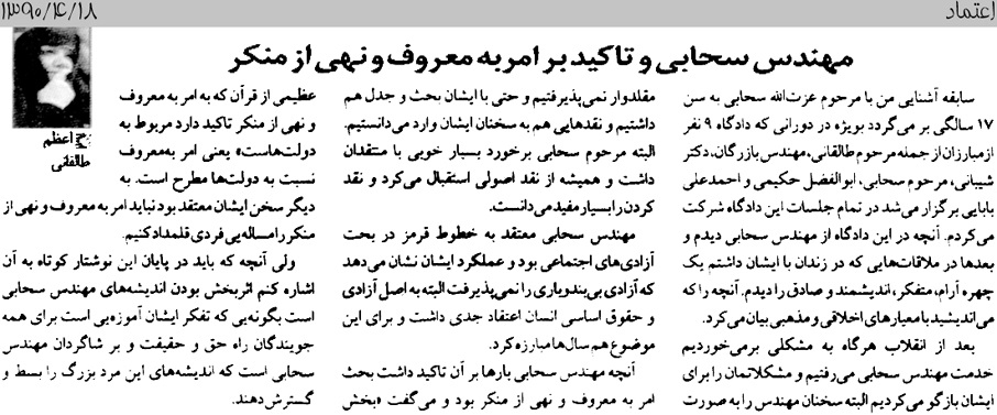 اعظم طالقانی اعظم طالقانی:مهندس سحابی و تاکید بر امربه معروف و نهی از منکر- اعتماد1390/04/18 اعظم طالقانی:مهندس سحابی و تاکید بر امربه معروف و نهی از منکر- اعتماد1390/04/18 ادامه... aA aA قلم کوچکتر قلم بزرگتر اشتراکگذاری