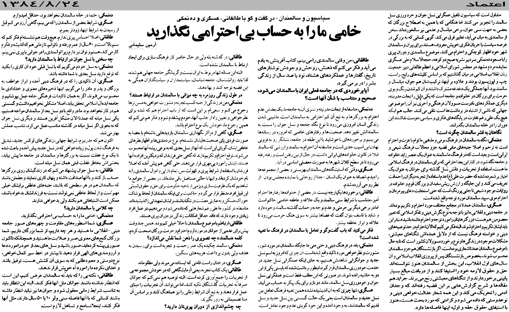 سیاسیون و سالمندان- درگفت وگو با اعظم طالقانی،عسکری و ده نمکی -اعتماد24-8-84