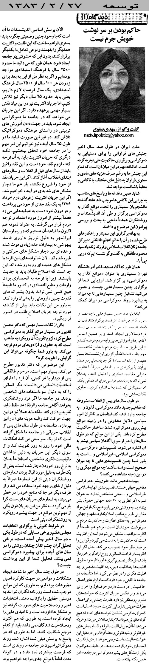 اعظم طالقانی اعظم طالقانی: حاکم بودن برسرنوشت خویش جرم نیست اعظم طالقانی: حاکم بودن برسرنوشت خویش جرم نیست ادامه... aA aA قلم کوچکتر قلم بزرگتر اشتراکگذاری